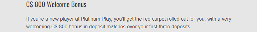 Presque tous jeux de casino en ligne les fournisseurs offrent à leurs utilisateurs un bonus de bienvenue. Le bonus de jeu Platinum est différent; plutôt que de forcer les joueurs à parier sur leur premier jour à un niveau beaucoup plus élevé, on leur demande de jouer et de placer leur pari virtuellement sans risque. Lors de leur inscription sur la plateforme, ils recevront un bonus de bienvenue de 1000 €où il pourra être utilisé pour parier sur d'autres jeux. C'est une correspondance à 100% qui peut aller jusqu'à 200 €jusqu'à ce que les 5 premiers dépôts soient effectués. En outre, les utilisateurs peuvent obtenir des tours gratuits lorsqu'ils effectuent leur troisième dépôt. Si le joueur effectue son dépôt avec l'une des méthodes préférées de platinum play, il recevra un bonus de 10% en plus de son dépôt.