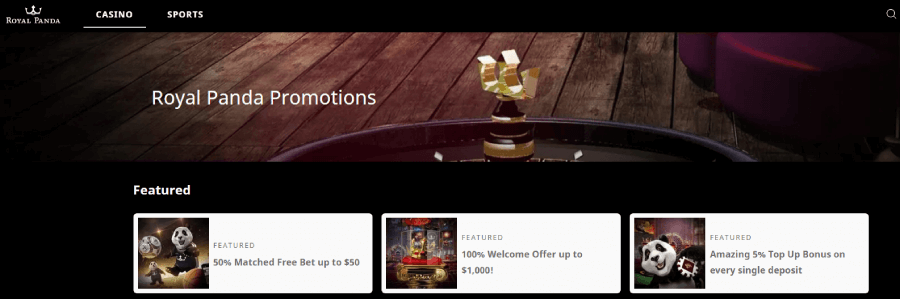 Royal Panda s'est fait un nom pour ses offres extravagantes. Ils ont des bonus de bienvenue lucratifs. Vous pouvez consulter la section "mes offres" pour obtenir un bonus max attractif. De plus, ils ont une excellente interface pour transmettre la même chose. Quelques-uns de leurs systèmes de bonus de jeu sont répertoriés et discutés ci-dessous. Il est entendu que les bonus ne peuvent pas être retirés, mais pour retirer des fonds et procéder à des bonus de jeu, vous devez miser des mises en espèces, ce qui représente au moins 35 fois le montant initial du bonus de bienvenue.