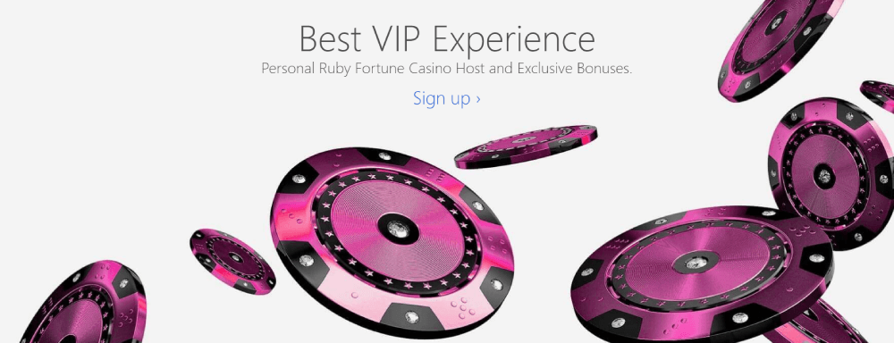 Ruby Fortune a un programme d'adhésion VIP au club de fidélité. Les joueurs obtiennent un point de fidélité pour chaque pari de 10 €qu'ils peuvent ensuite utiliser pour gravir les échelons du club de fidélité. Chaque niveau du club de fidélité comporte de nombreux avantages et bonus différents.